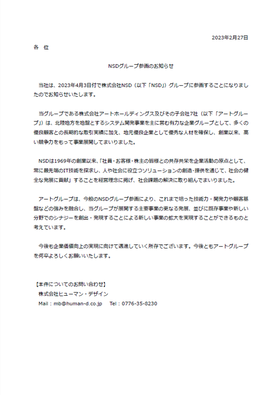 NSDグループ参画のお知らせ