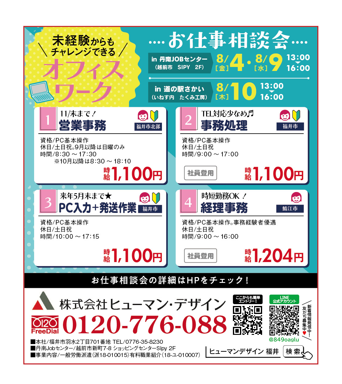 ★⌒★福井県嶺北エリアのオフィスワーク集めました★⌒★