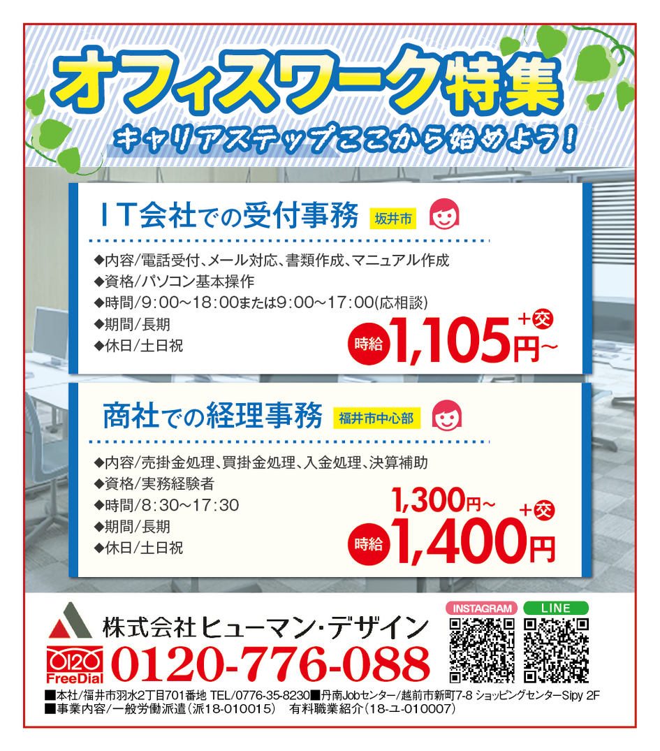 オフィスワークでの転職や復職をお考えの方は特におススメです! お気軽にお問合せください!