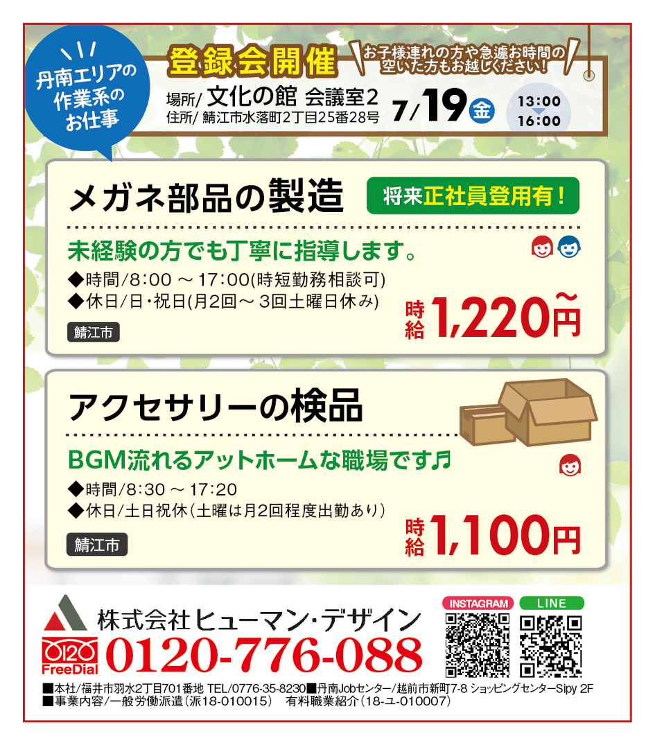 丹南エリアの作業・製造系の新着求人です!