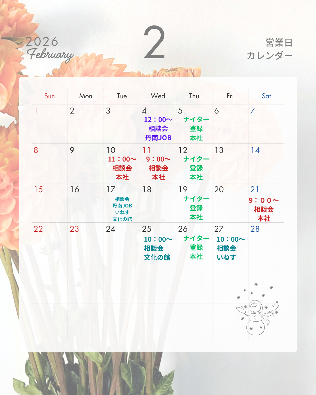 2/21(土)9:00~15:00(最終受付14:00)