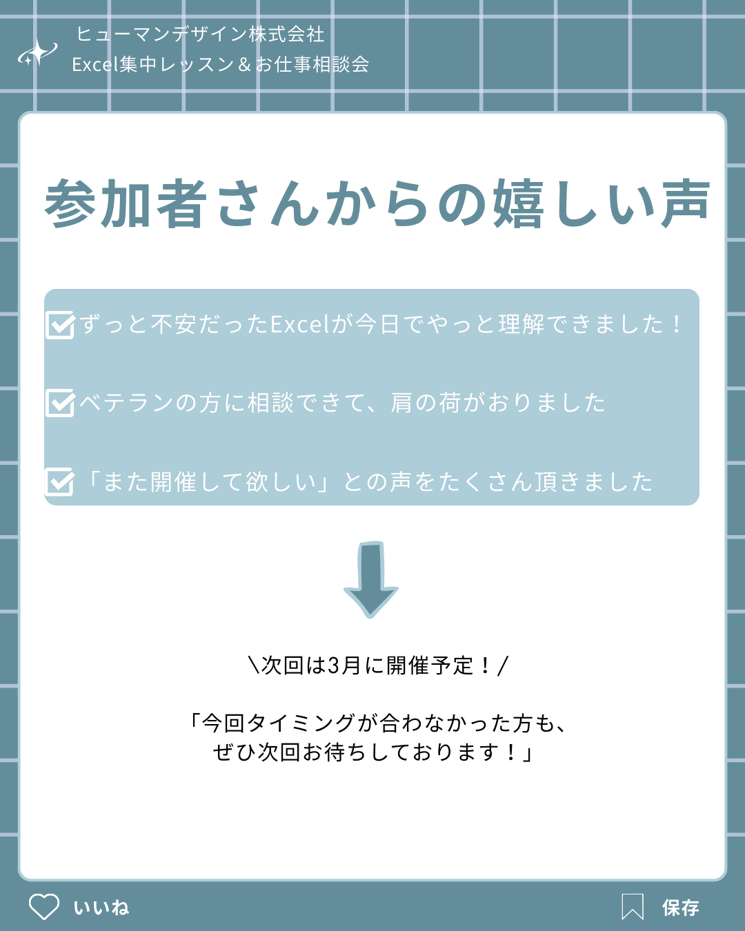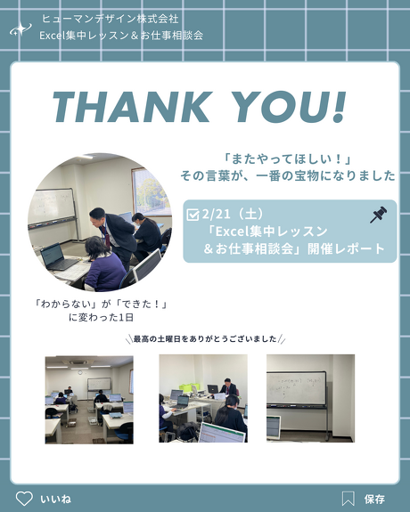 先日の2/21(土)、開催した「Excel集中レッスン&お仕事相談会」!✨ 無事に終了しました!